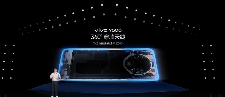 vivo Y500 还搭载了 360° 穿墙天线,天线藏在中框里,不管信号从哪个方向来都能精准捕捉